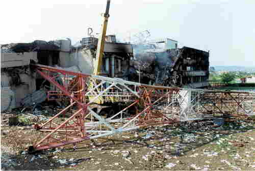 missile (aircraft bomb) at the antenna pole and mobile telephony equipment